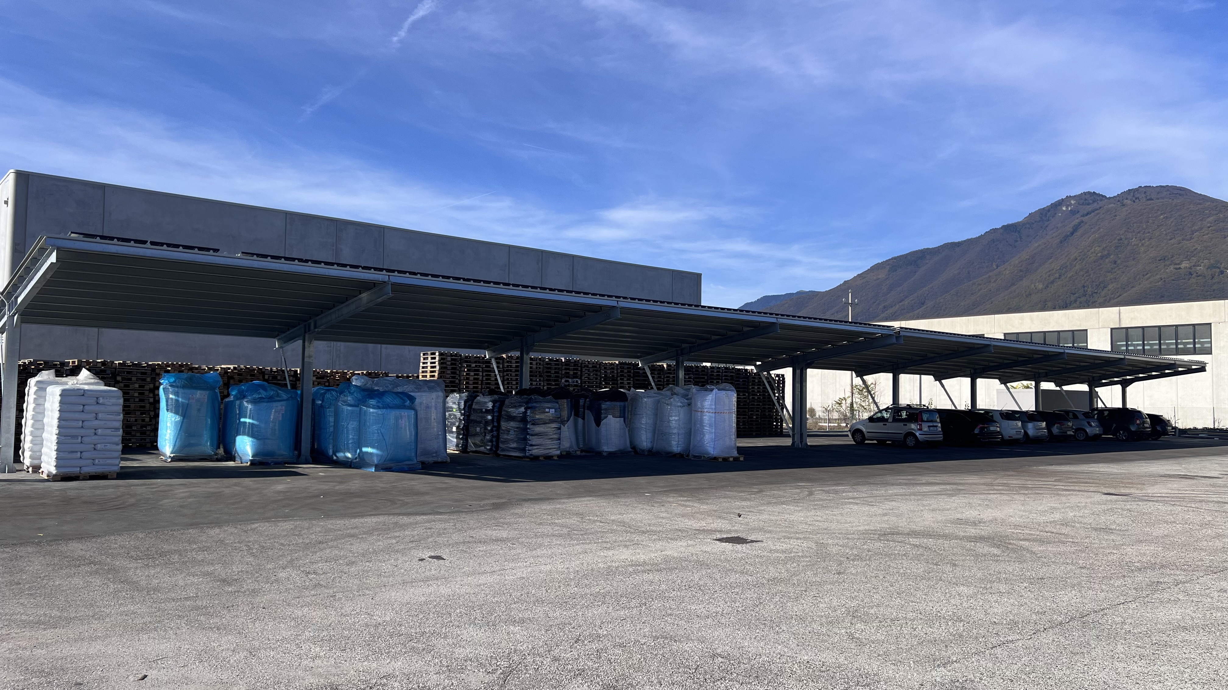 Operativa da luglio 2025, la tettoia per parcheggio auto dispone di 25 posti auto coperti.